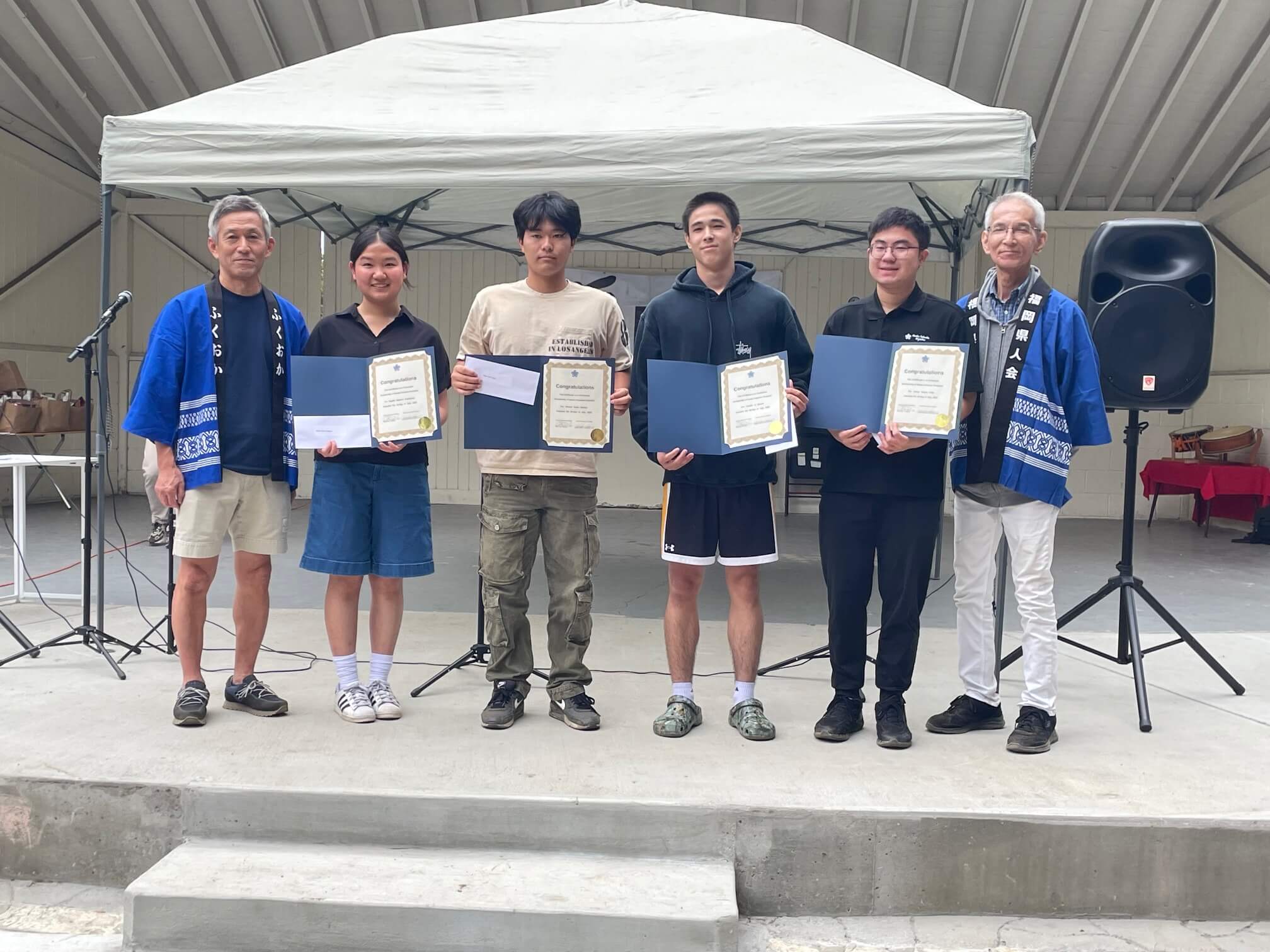 2025年7月20日、南加福岡県人会の恒例ピクニックイベントが開催されました。当日は多くの会員、ご家族、ご来賓の皆様にご参加いただき、世代を超えた交流と文化継承の意義を改めて感じる一日となりました。 増田恵様の開会の言葉で幕を開け、出席者全員で黙祷を捧げました。続いて来賓紹介が行われ、南加福岡県人会会長 古賀敬郎様よりご挨拶を頂戴しました。地域のつながりを大切にし、次世代へ文化を継承していくことの重要性について、心温まるお言葉をいただきました。 2025年福岡県子弟招へいプログラムに参加された川上エリー・ナツミ様からは、現地での体験や学びについての参加報告がありました。 若い世代が福岡との絆を深める貴重な機会となっていることが伝わる内容でした。 また、奨学金授与式が行われ下記の方が表彰されました、